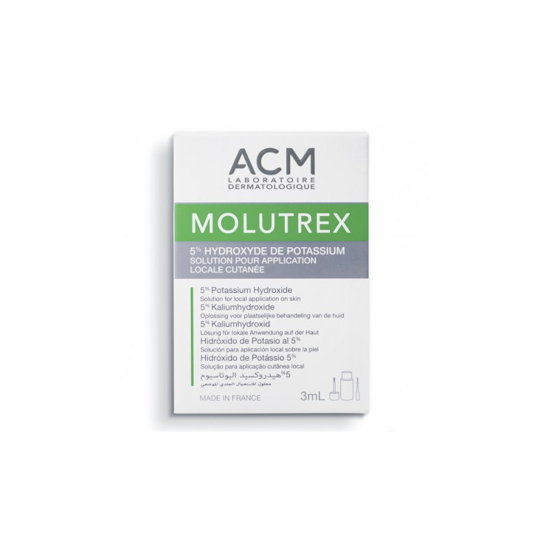 MOLUTREX est préconisé en cas de Molluscum contagiosum.  Conseils d’utilisation : Mettre une petite quantité de produit sur la spatule. (En cas de nombre important de Molluscum contagiosum, humidifier légèrement un coton tige en évitant de le tremper plusieurs fois de suite dans la solution par soucis d’hygiène.) Essuyer la spatule sur le rebord du flacon pour éviter qu’une goutte se forme au bout de la spatule. A l’aide de la spatule ou du coton tige, appliquer la solution sans excès sur les Molluscum contagiosum. Laisser sécher. Recharger la spatule en produit à chaque application. Renouveler les applications sur…