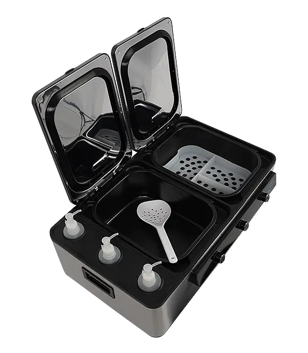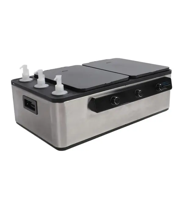 Conçu en acier inoxydable de haute qualité, cet appareil allie durabilité et esthétique professionnelle. Ses compartiments séparés pour les huiles et les pierres vous permettent d’organiser efficacement votre matériel. De plus, sa conception facilite le nettoyage et l’entretien, un aspect crucial pour maintenir une hygiène irréprochable dans votre pratique.