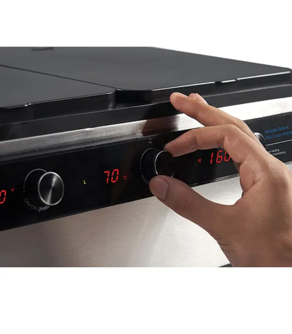 - Réduction des coûts : La possibilité de chauffer simultanément huiles et pierres permet d’économiser sur les coûts énergétiques par rapport à l’utilisation de deux appareils séparés.