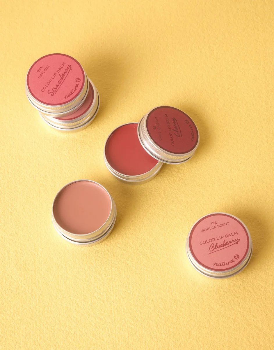 Bálsamo de labios con aroma a vainilla en lata con tapa de rosca. Perfecto para nutrir y suavizar los labios secos, además de añadirle un poco de color. Disponible en 4 tonos.