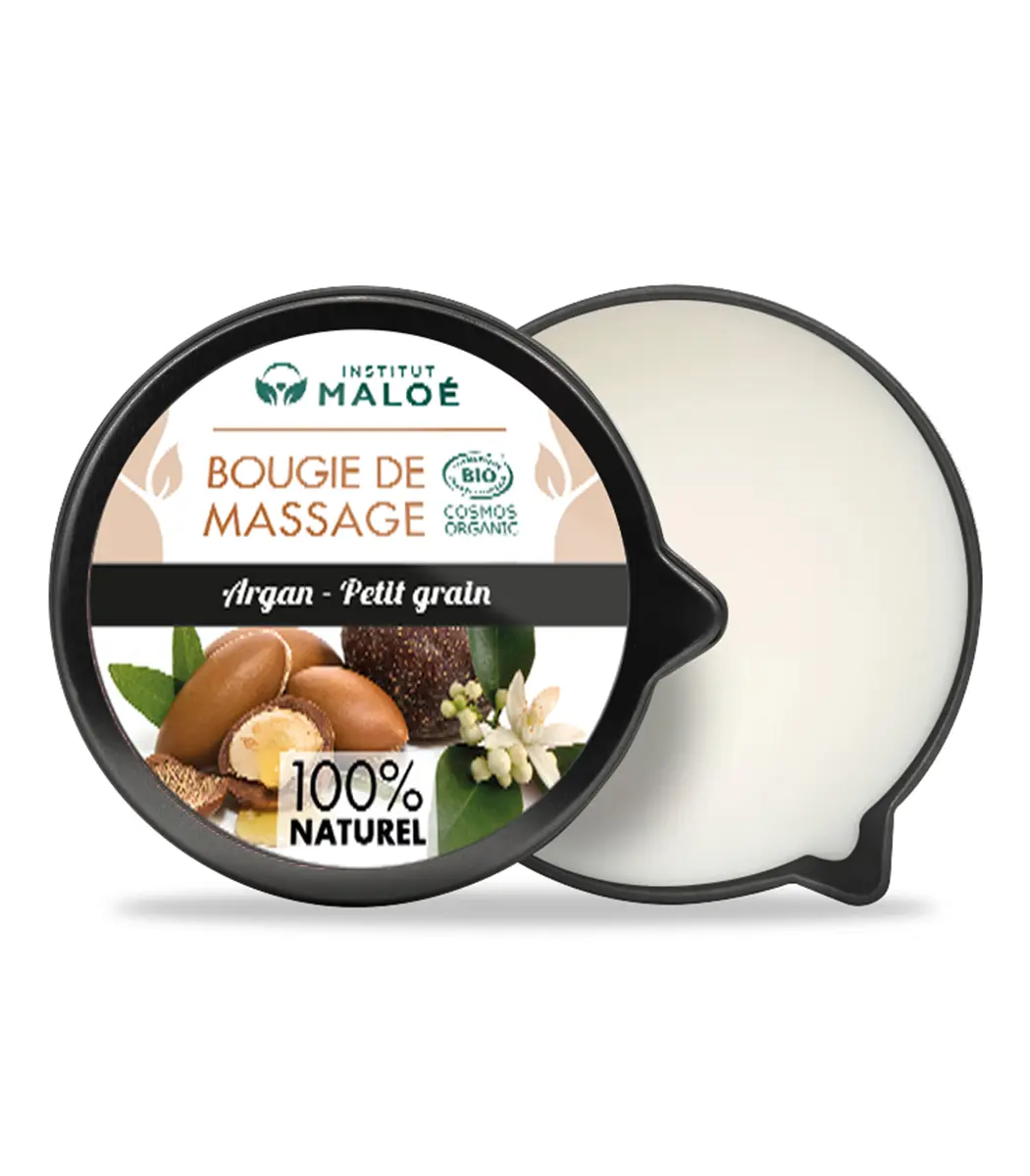 Bougie de massage naturelle – Argan / Petit Grain (BIO) : l’alliance parfaite pour un massage divin