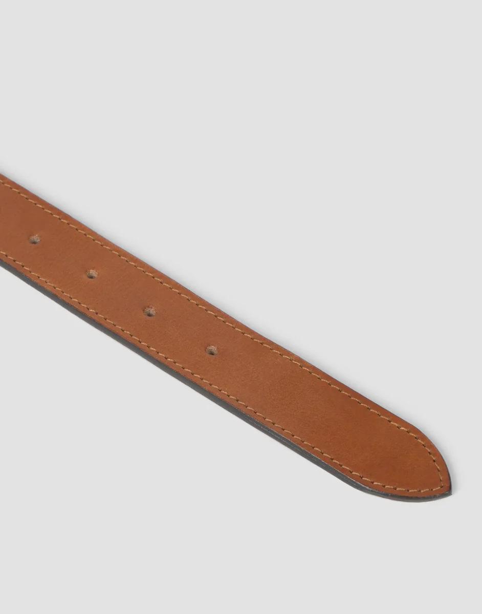 Cinturón de piel con hebilla de metal y aplicación de cuentas plateadas.