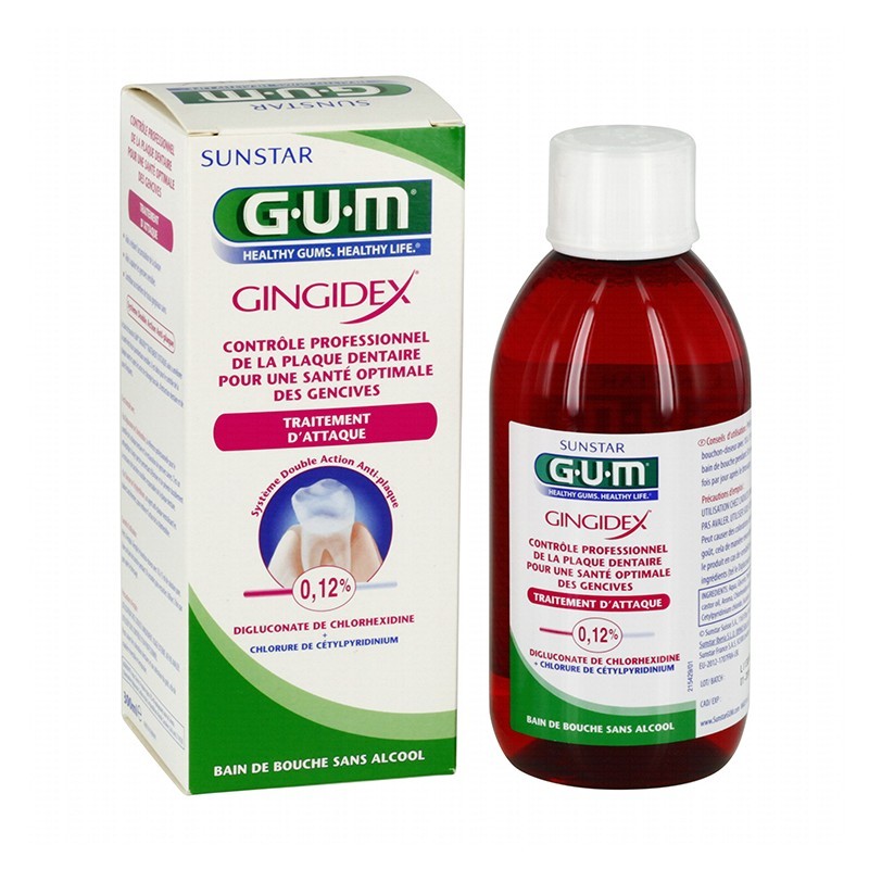 Une bonne hygiène bucco-dentaire constitue la meilleure prévention contre la gingivite et la formation de plaque dentaire. Le brossage des dents et l’utilisation d’un fil dentaire s’avèrent essentiels pour une hygiène optimale, mais cela demeure insuffisant : le bain de bouche de prévention quotidienne GUM® Gingidex® 0,06 % est idéal pour prévenir l’accumulation de la plaque dentaire et fournir une protection durable contre les problèmes de gencives. Il élimine les premiers signes de sensibilité des gencives et de gingivite et prévient la récurrence des maladies gingivales. Sans alcool, il peut s’utiliser tous les jours.