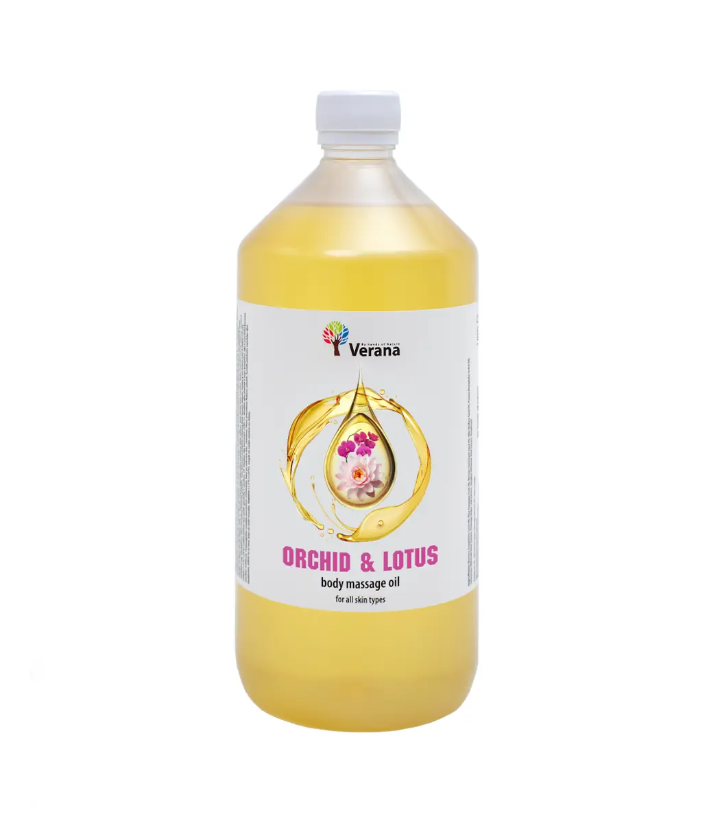 Au cœur de cette huile de massage, on retrouve une base d’huiles végétales soigneusement sélectionnées pour leurs propriétés nourrissantes et leur compatibilité avec tous les types de peau. Cette base est enrichie d’extraits d’orchidée et de lotus, deux plantes aux vertus millénaires reconnues dans les traditions de beauté et de bien-être.