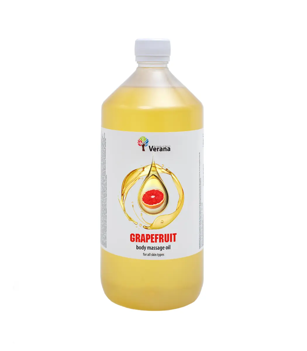 Au cœur de cette huile de massage, on retrouve une base d’huiles végétales soigneusement sélectionnées pour leurs propriétés nourrissantes et leur compatibilité avec tous les types de peau. Cette base est enrichie d’extraits de pamplemousse, un agrume aux vertus reconnues dans les traditions de beauté et de bien-être.