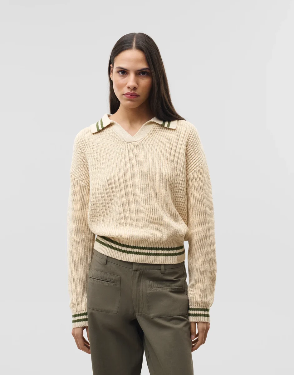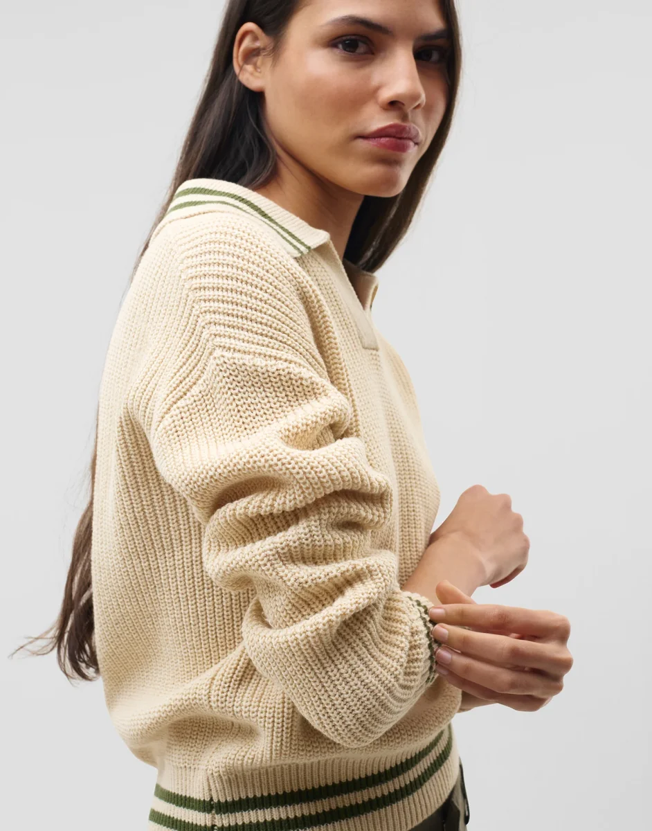 Jersey de punto con cuello polo y manga larga.