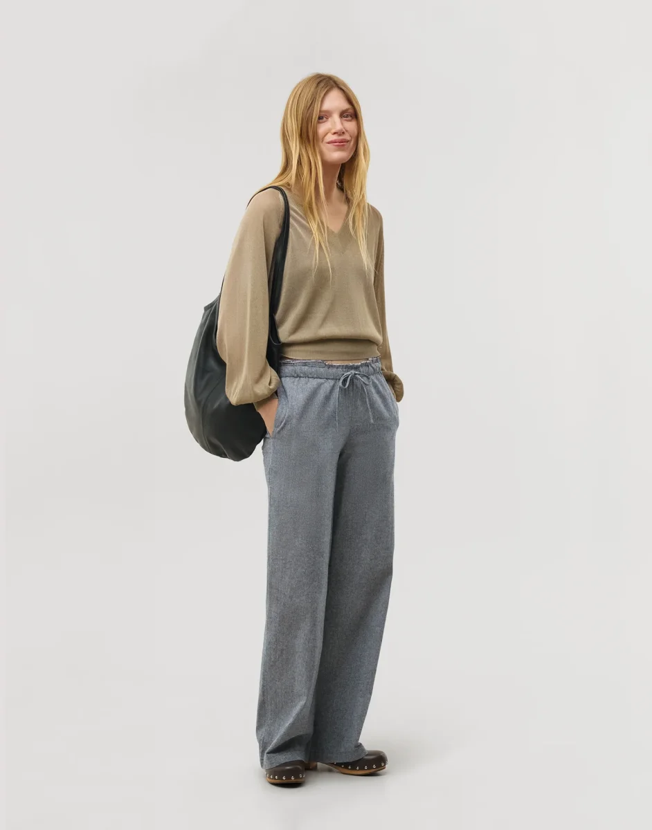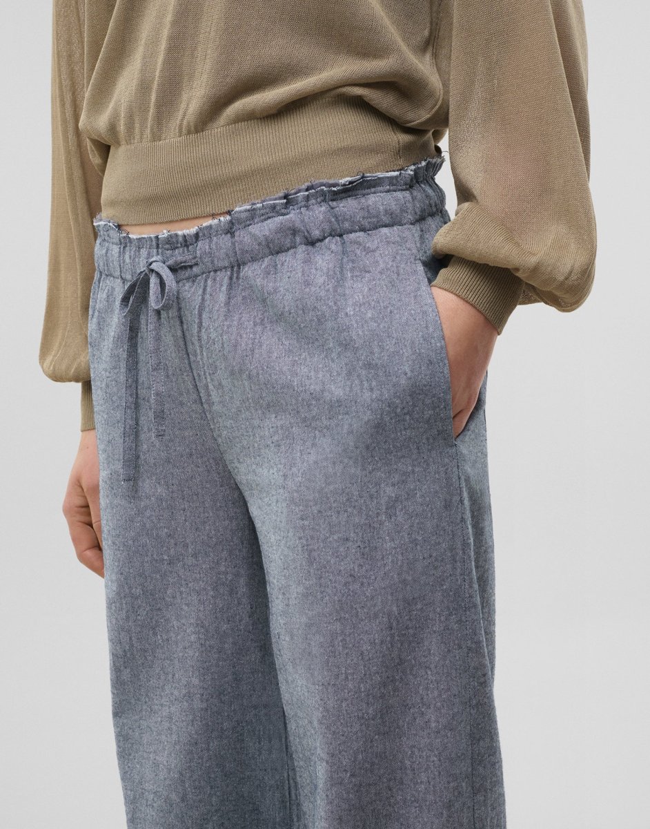 Pantalón confeccionado en algodón 100%. Tiro bajo y cintura elástica ajustable con cordones. Bolsillos laterales y bolsillos de plastrón en espalda.