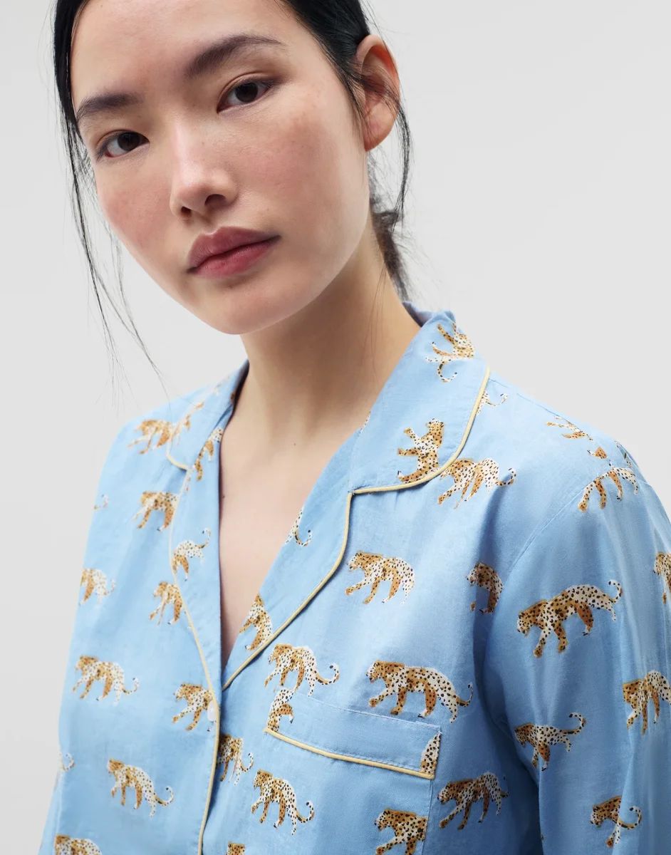 Set de pijama en algodón compuesto por dos piezas: camisa de manga larga y pantalón largo.