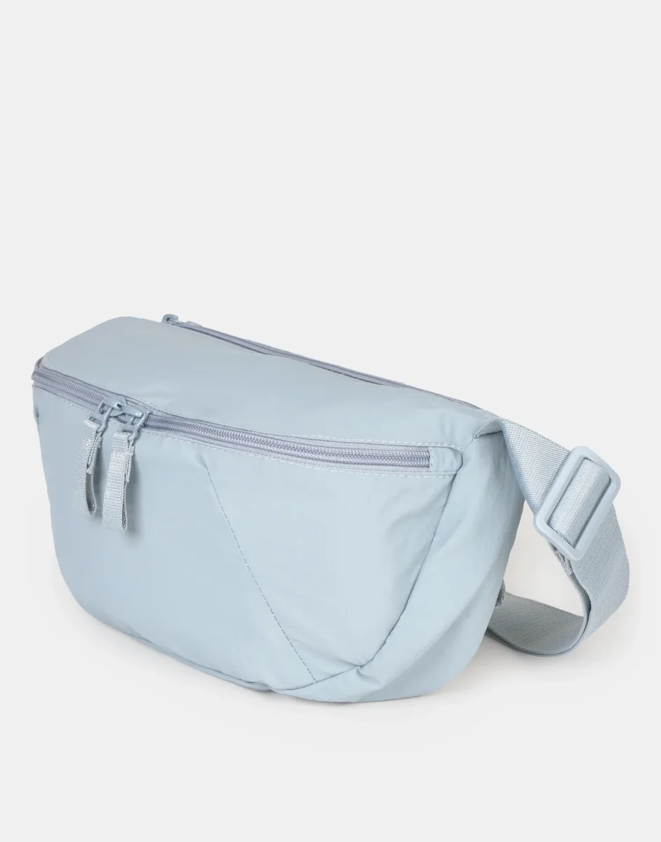 Riñonera realizada en tejido resistente al agua. Capacidad de 6 litros. Bolsillo en la parte trasera. Cierre de cremallera. Correa larga ajustable.