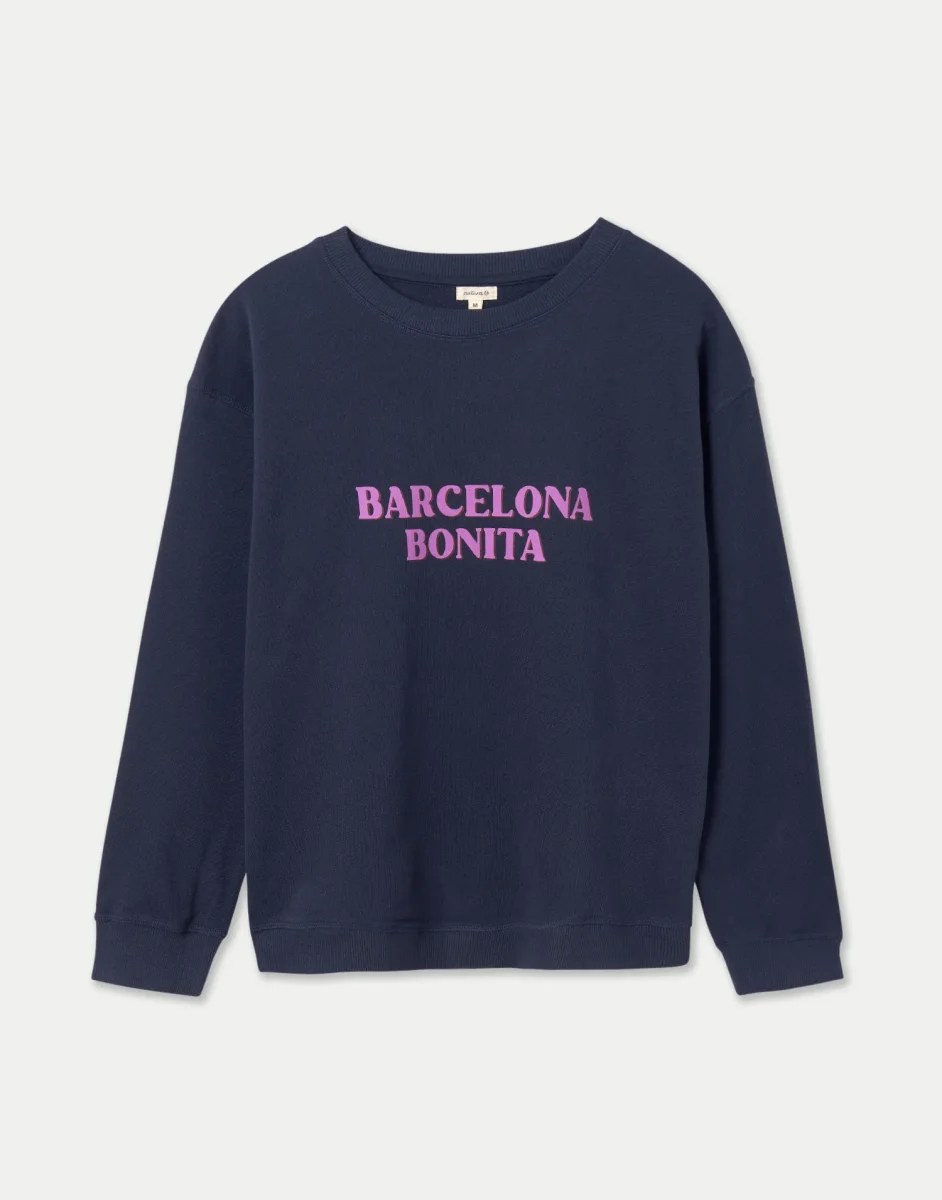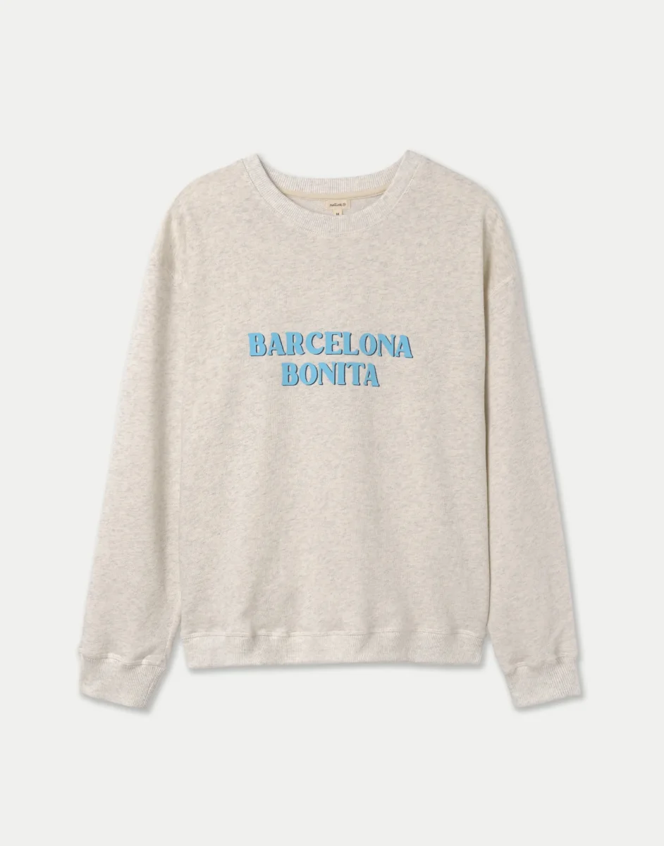 Sudadera de cuello redondo y manga larga con acabados en rib. Detalle de estampación en la parte delantera.