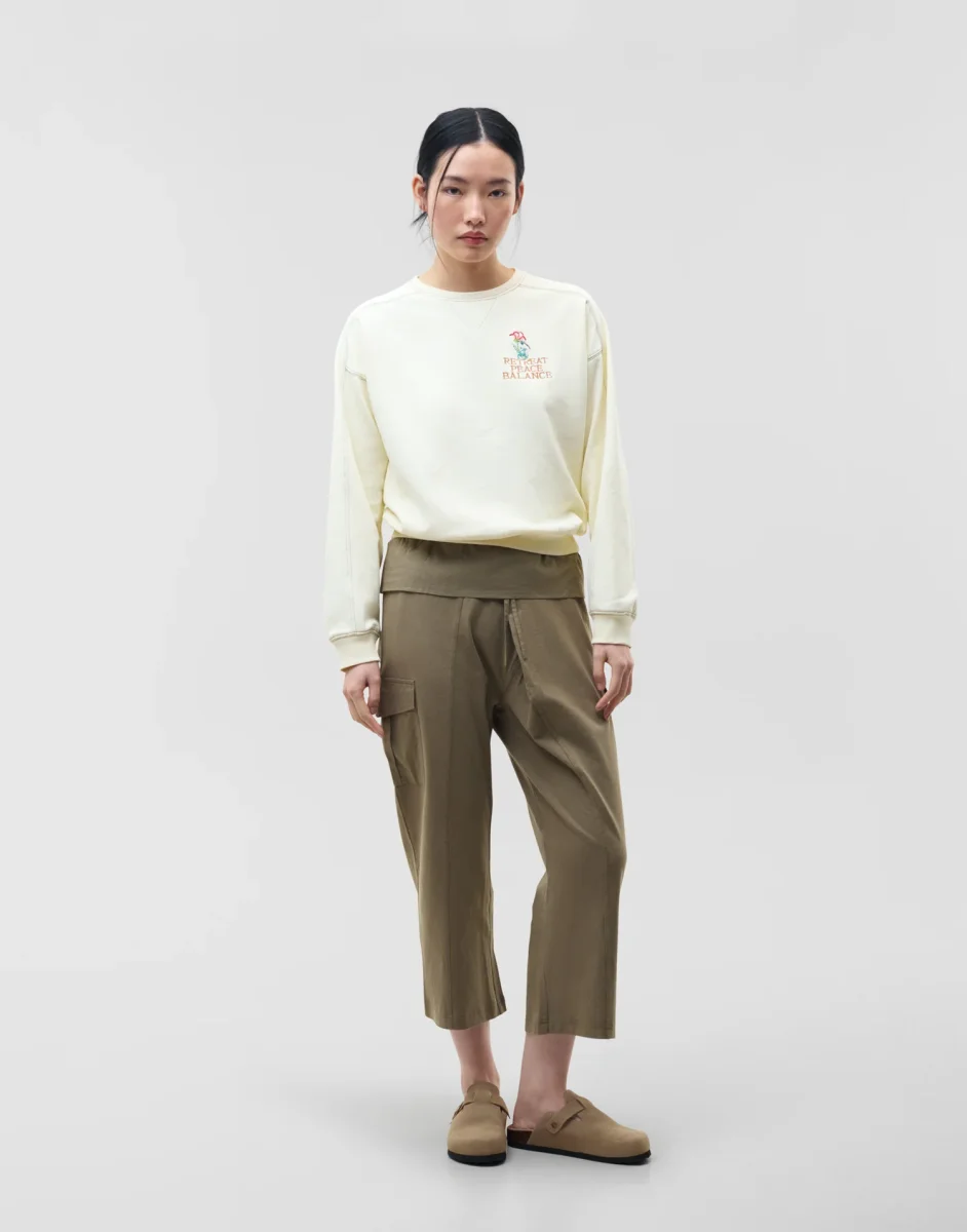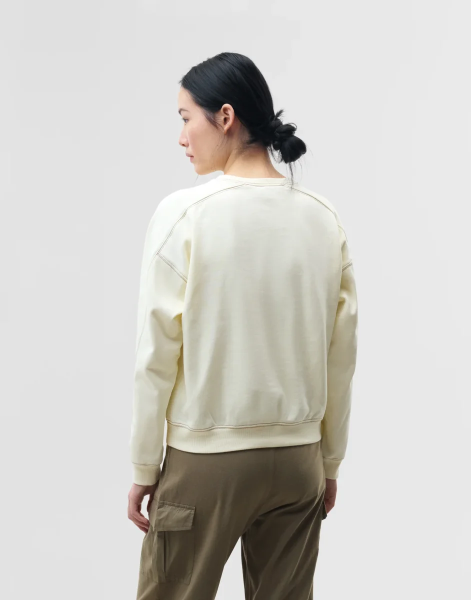 Sudadera con cuello redondo y manga larga con hombro caído acabada en puño. Detalles de pespunte y bordado a contraste.