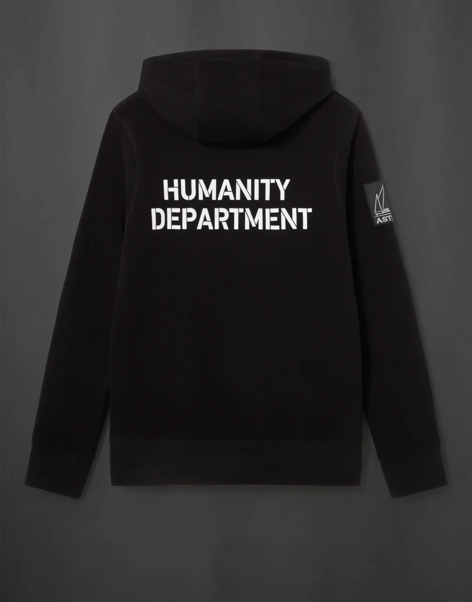Incluye el parche bordado ASTRAL en la manga derecha, un detalle que refuerza la identidad del diseño. En la parte frontal el logotipo y en la espalda, el mensaje de HUMANITY DEPARTMENT completan una sudadera pensada para acompañarte.