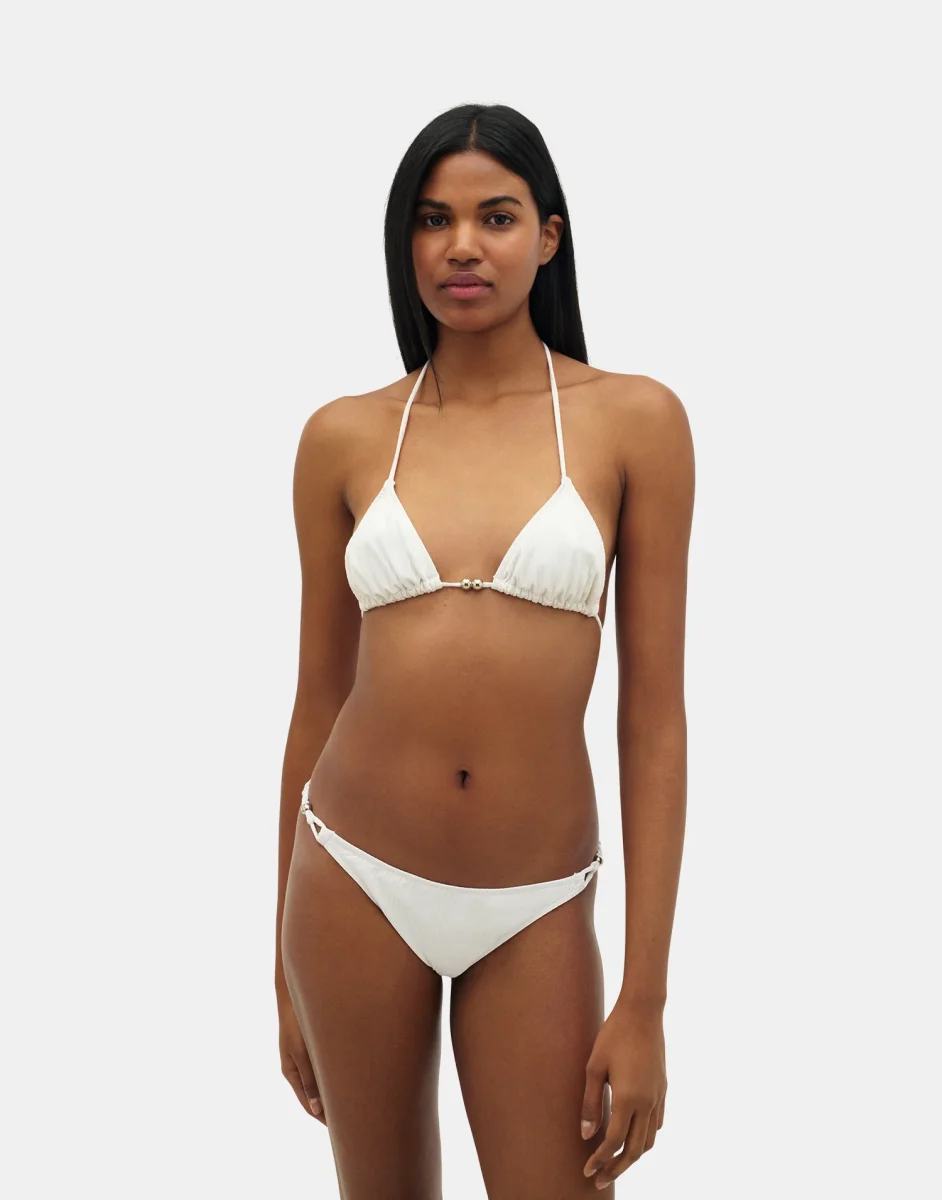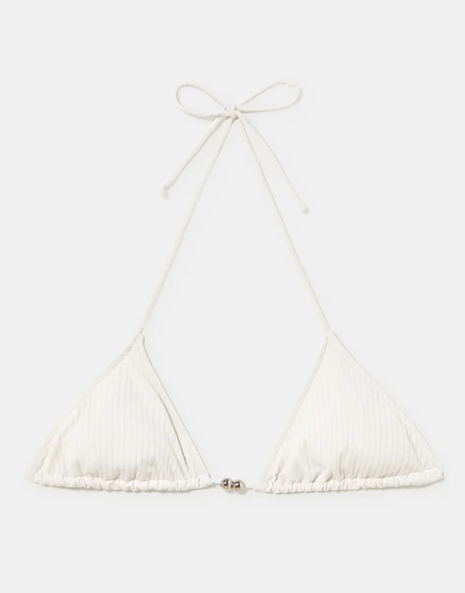 Top de bikini halter de diseño triangular, con tiras finas para anudar en nuca y espalda. Acabado forrado sin aros para un mejor ajuste y comodidad.