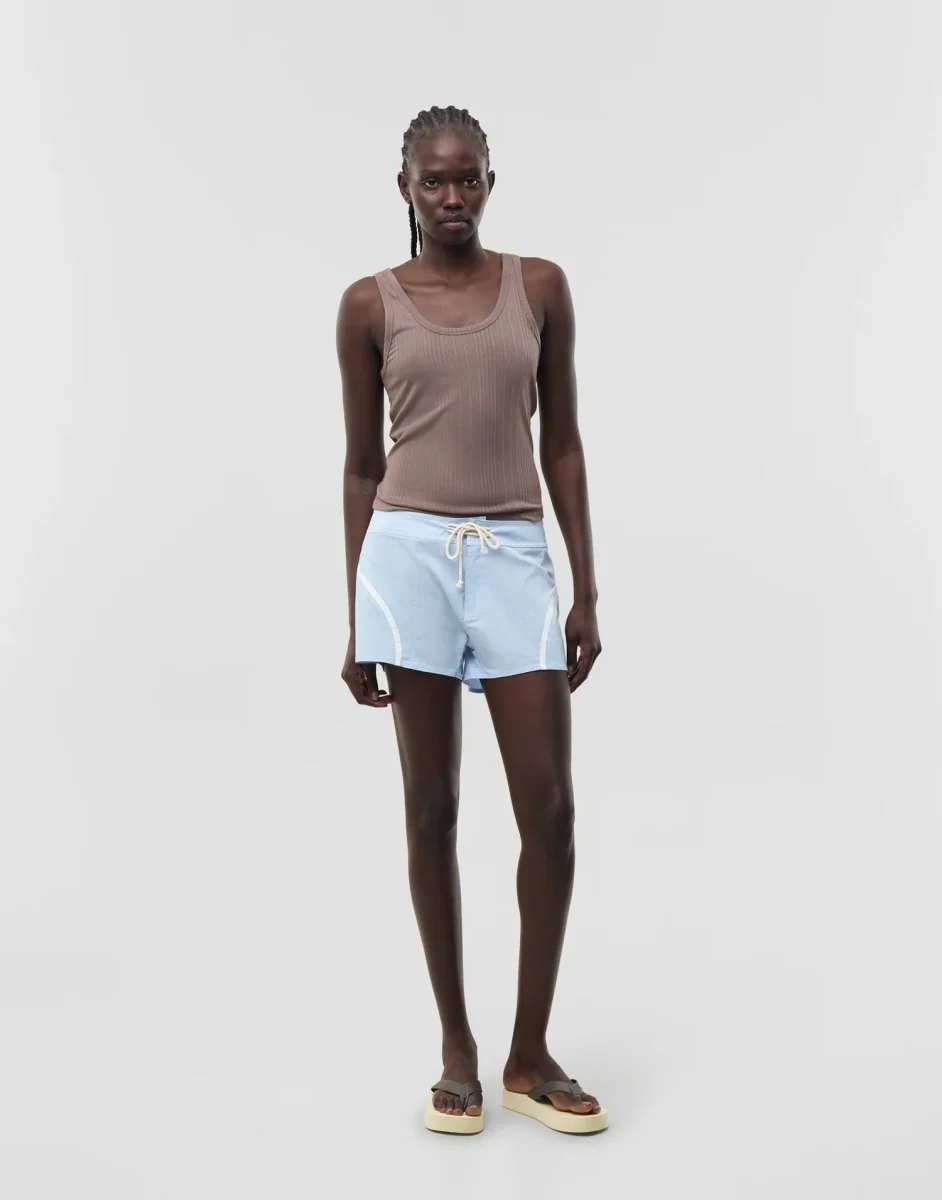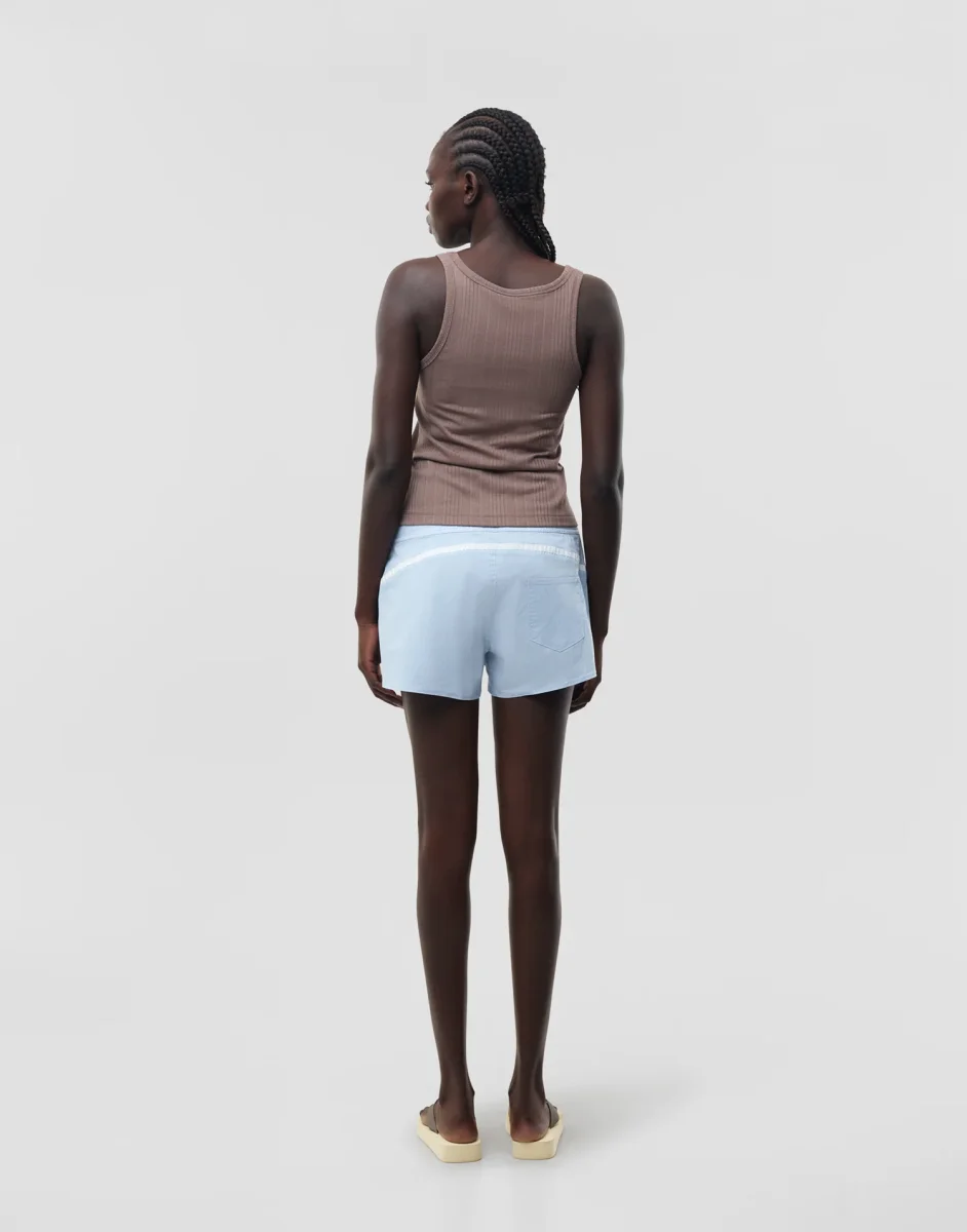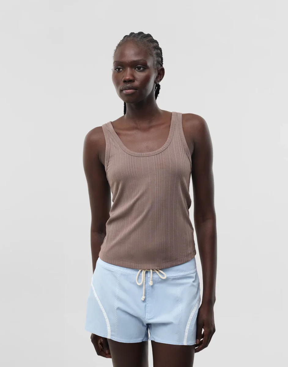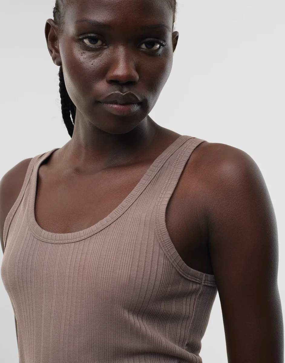 Top con cuello redondo, manga sisa y tejido acabado en rib.