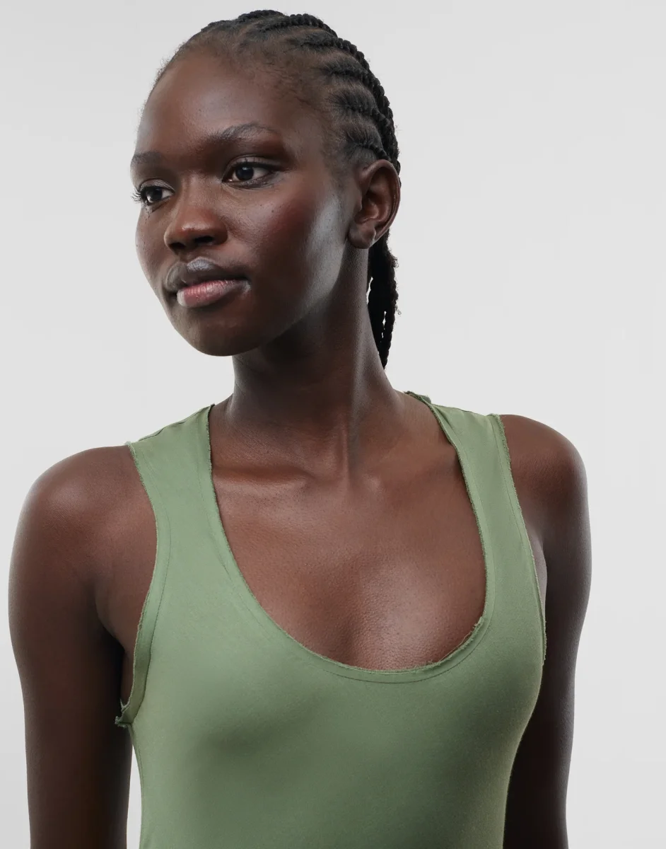 Vestido largo confeccionado 100% en algodón, con cuello redondo y manga sisa. Detalle de apertura lateral.