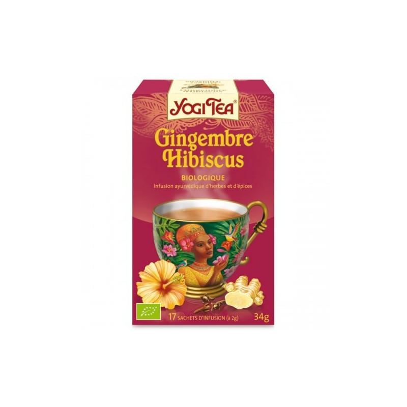 YOGI TEA Gingembre Hibiscus 17x2g (Hibiscus, réglisse, gingembre, menthe poivrée)